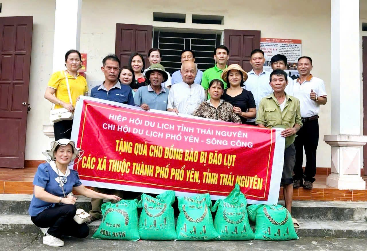 Từ ngày 17-19/9/2024, Hiệp hội du lịch tỉnh cùng các nhà hảo tâm trong và ngoài hiệp hội đã trao hơn 7 tấn gạo cho đồng bào huyện Định Hoá; xã Yên Đổ (huyện Phú Lương) và 3 xã tại thành phố Phổ Yên. Hiệp hội du lịch tỉnh đã kêu gọi các mạnh thường quân, các nhà hảo tâm chung tay ủng hộ với tổng số tiền trên 150 triệu đồng... Những đóng góp này là sự sẻ chia, góp phần động viên, hỗ trợ người dân Thái Nguyên bị ảnh hưởng bão lũ sớm vượt qua giai đoạn khó khăn, khôi phục sản xuất và ổn định cuộc sống.