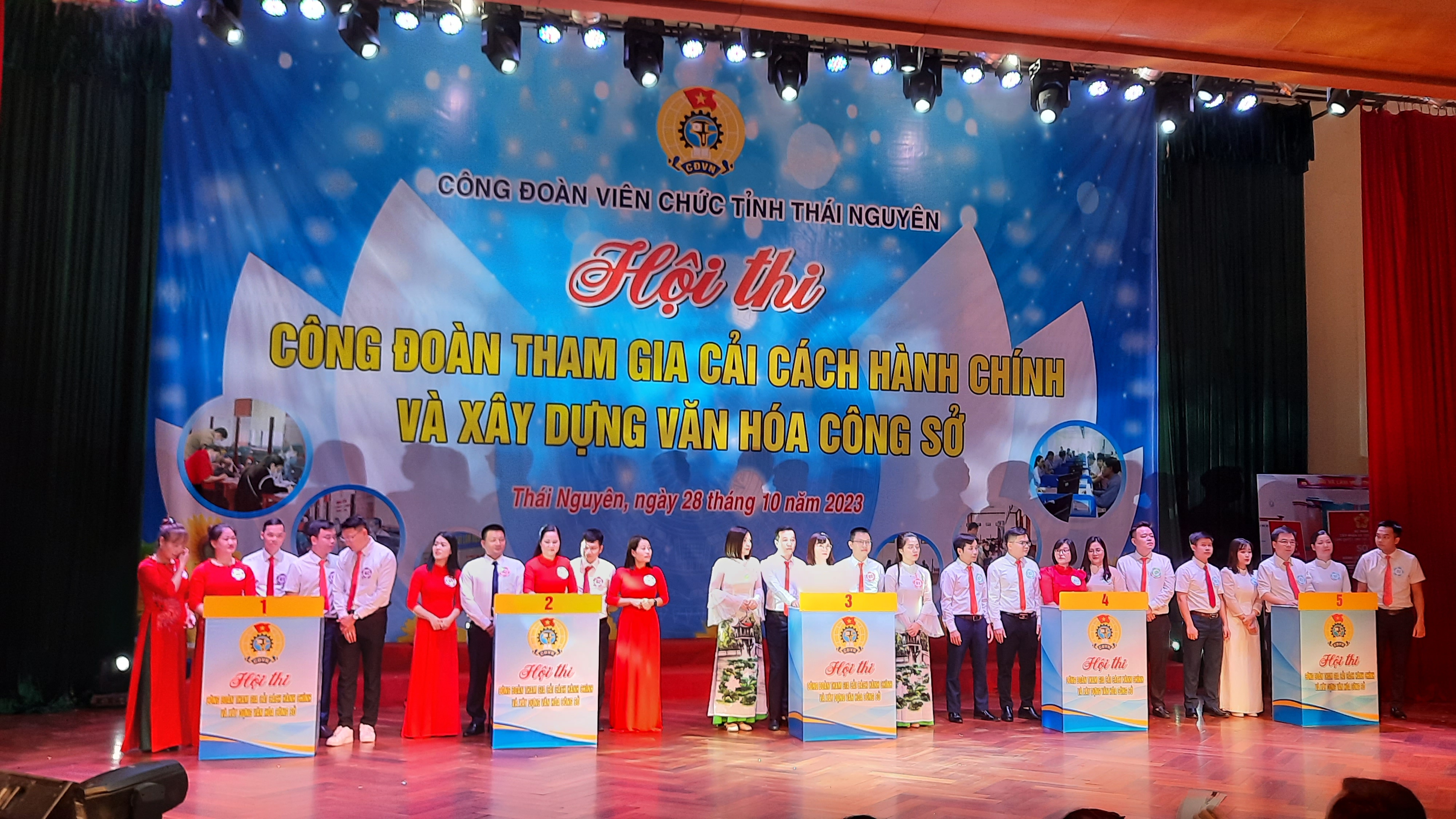 Sáng ngày 28/10/2023, tại Rạp Măng non Nhà thiếu nhi Thái Nguyên, Công đoàn Viên chức tỉnh tổ chức Hội thi “Công đoàn tham gia cải cách hành chính và xây dựng văn hóa công sở” năm 2023. Đến dự và cổ vũ Hội thi có lãnh đạo Liên đoàn Lao động tỉnh; lãnh đạo các sở, ban, ngành và đại diện 42 công đoàn cơ sở trực thuộc.