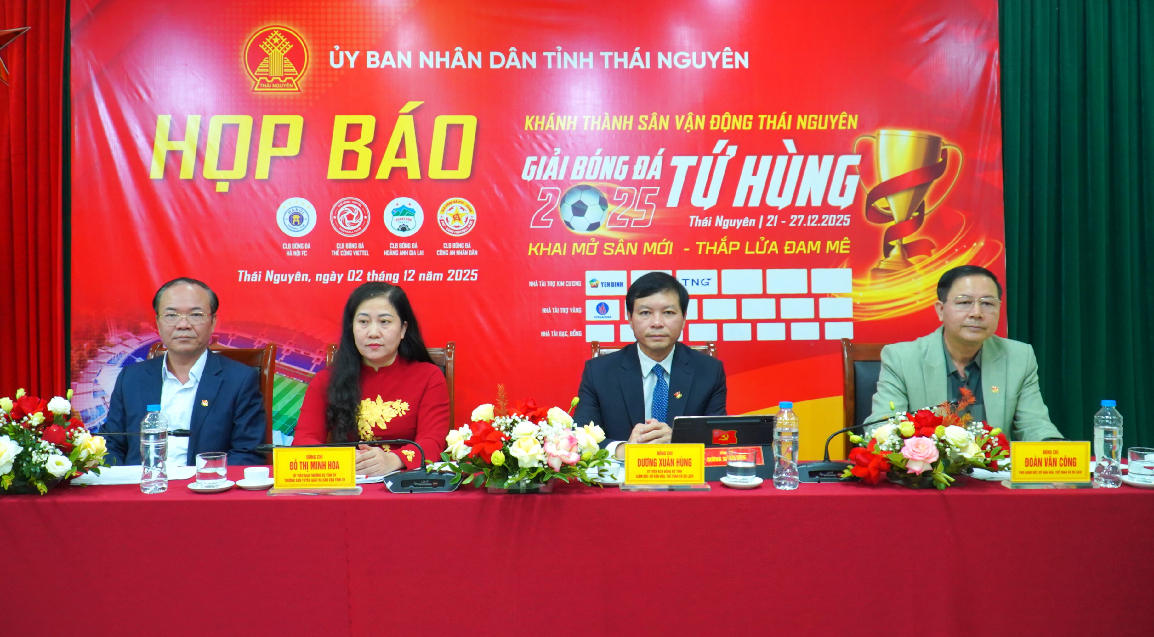 Tại họp báo, Ban Tổ chức đã cung cấp thông tin cho báo chí về mục đích, ý nghĩa, quy mô, nội dung chuyên môn liên quan đến Giải Tứ hùng và sự kiện khành thành Sân vận động. Theo đó, Giải bóng đá Tứ hùng – Thái Nguyên, năm 2025 do Sở Văn hoá, Thể thao và Du lịch phối hợp với Liên đoàn Bóng đá Việt Nam tổ chức từ ngày 19/12/2025 đến ngày 27/12/2025. Chương trình khai mạc dự kiến sẽ diễn ra vào lúc 18 giờ 30 phút ngày 21/12/2025 tại Sân Vận động tỉnh Thái Nguyên (xã Đại Phúc, tỉnh Thái Nguyên). Chương trình Bế mạc và trao giải cho các cá nhân có thành tích xuất sắc tại Giải đấu dự kiến tổ chức vào lúc 20 giờ 00 phút ngày 25/12/2025.